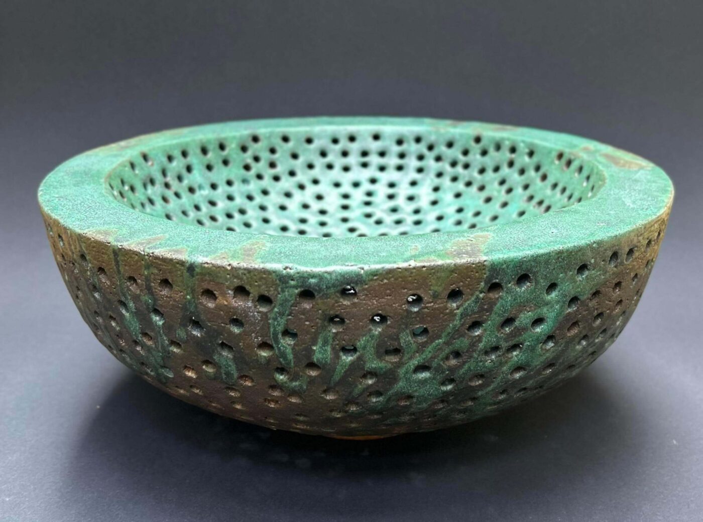 Double Walled Bowl 1 Laura KeilSalt Spring Island, BC Size 5" x 12" x 12" Medium Clay and glaze This piece is an exploration of the interplay between mass and lightness. The inspiration comes from the solidity and refined elegance of predynastic Egyptian stone carved vessels. The bowl is hand built using clay slabs and coils to make a closed form after the clay dries to leather hard it is pierced. The holes enliven the surface. Some are dark and some let light through, making one aware that the form is hollow. It appears both heavy and light. The clay’s surface alludes to an object that is weathered and has developed a patina over a long period of time. Buy artwork Double Walled Bowl 1 Laura KeilSalt Spring Island, BC Buy artwork About the artist About the artist Laura KeilSalt Spring Island, BC Laura Keil is a ceramic artist based on Salt Spring Island, BC. Currently, Laura is sharing a studio at the Pottery, in Fulford Village. She is also actively involved with the Tozan kiln, a traditional Japanese wood kiln, on Vancouver Island. Laura has had the good fortune to study ceramics around the world. Most importantly, with Akio Takamori at the University of Washington (MFA 1998), which left her with an appreciation for the value of personal touch. She also holds degrees form the Art Institute of Chicago (MFA 1986) and the New York State College of Ceramics at Alfred (BFA 1983) and has participated in numerous residencies and exhibits in Canada, the US and Europe. Follow on social