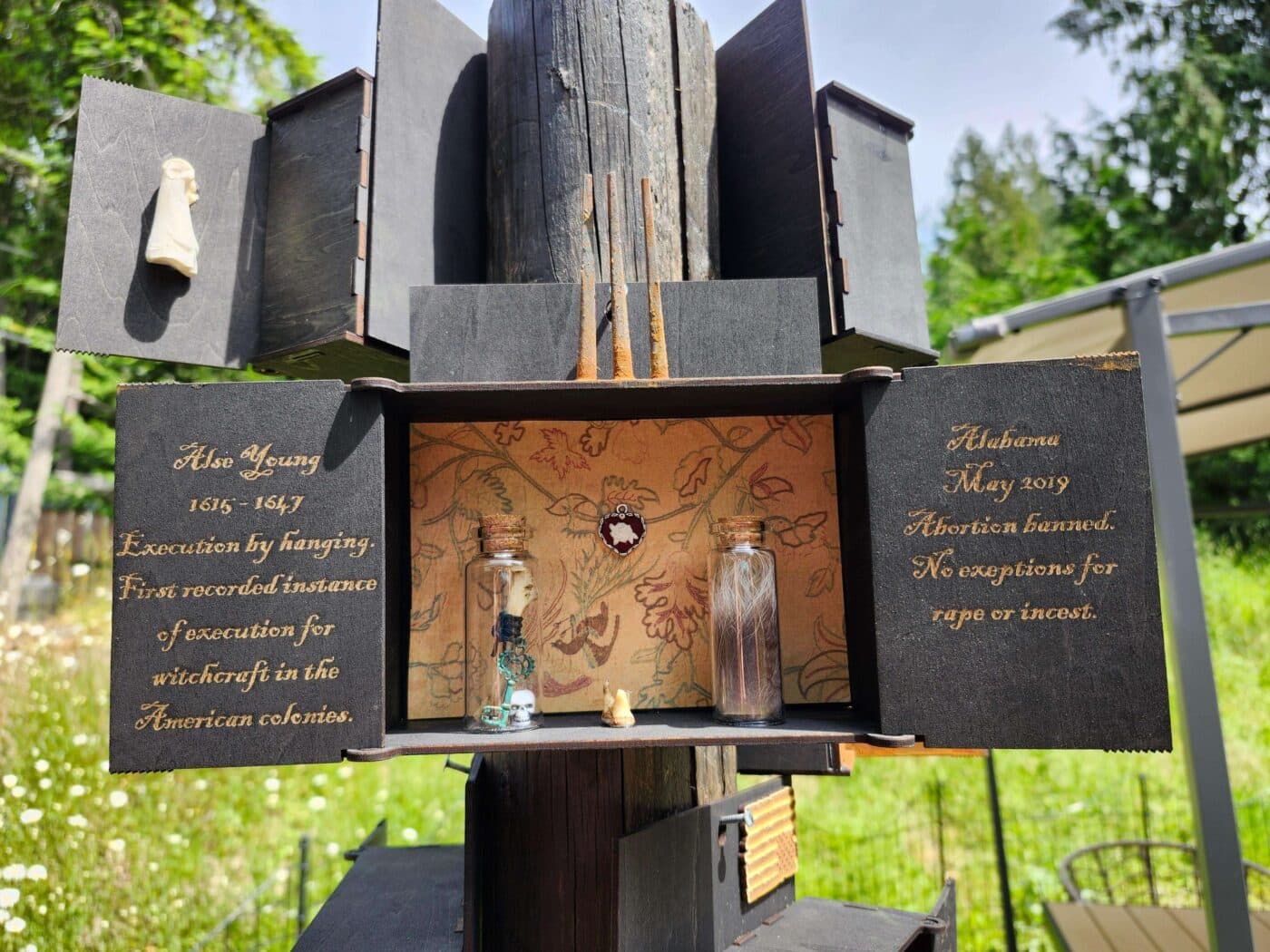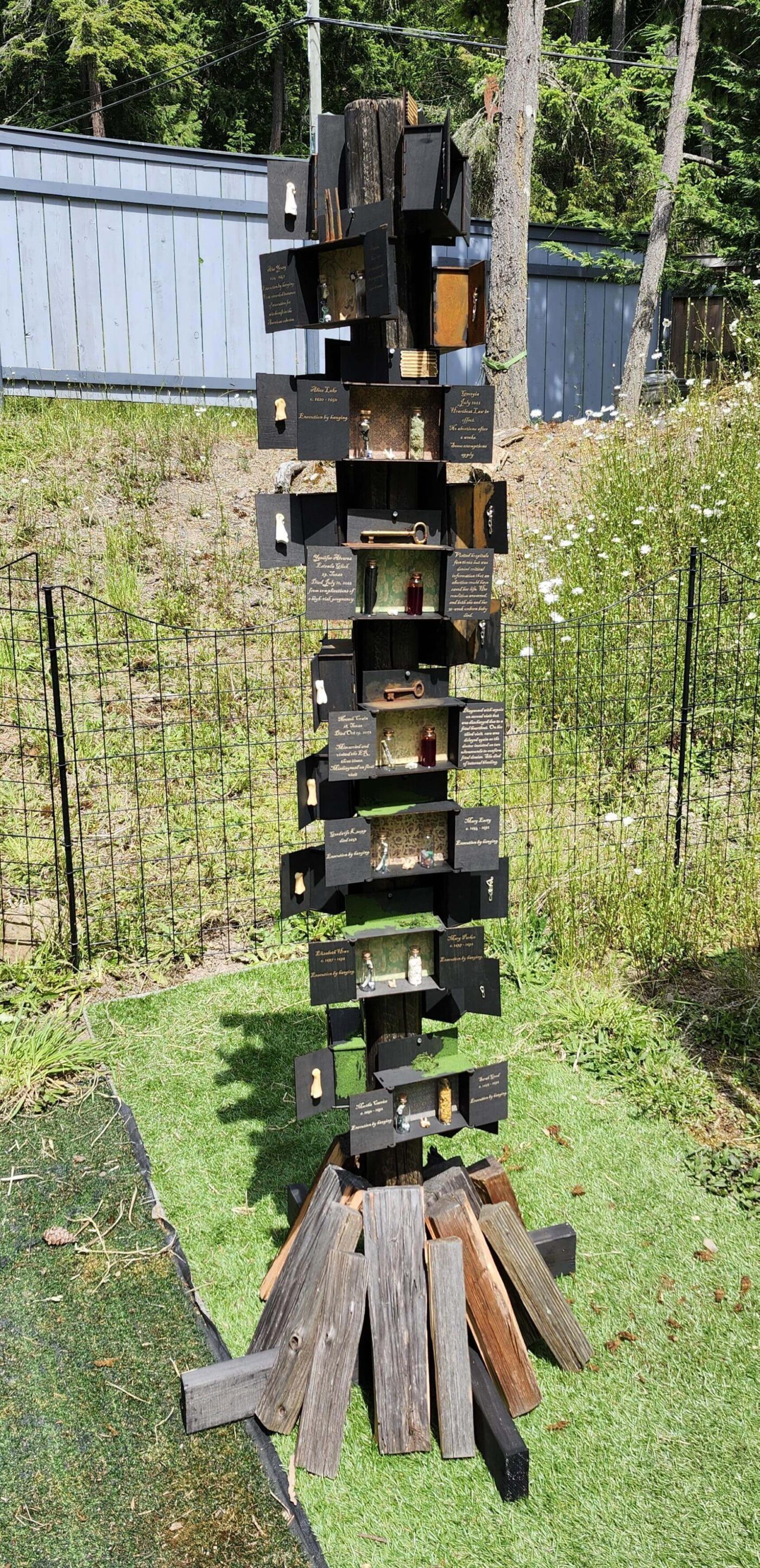 HEResy Matt AdolfPender Island, BC VIEWERS' CHOICE AWARD - 2nd Prize Size 78" x 31" x 31" Medium Mixed media PAS Viewers’ Choice Award 2nd Prize $2,000 This piece connects the colonial witch trials with today’s fight over reproductive rights. It looks at how women have been punished, silenced, and pushed to the margins, whether for stepping outside social norms or simply wanting control over their own bodies. The same fear and power plays appear across centuries in different forms. These deaths, both past and present are senseless, rooted in control rather than justice. Each box remembers those who were targeted, erased and speaks to the ongoing fight for bodily autonomy. The struggle isn’t over; the pyre remains, its flames fed by new forms. VIEWERS' CHOICE AWARD - 2nd Prize HEResy Matt AdolfPender Island, BC About the artist About the artist Matt AdolfPender Island, BC Matt Adolf is a contemporary artist whose work explores the intersection of reality and imagination. He received his Bachelor of Fine Arts from Emily Carr University. Drawing inspiration from pop culture, gothic folklore, and the supernatural, his art blends the visceral with the surreal, evoking both curiosity and unease. Follow on social
