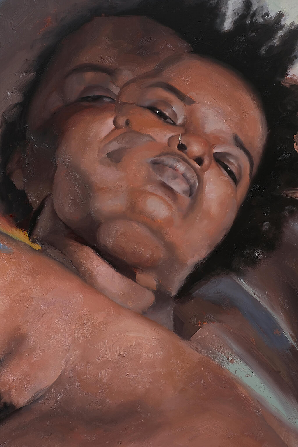 Nova Nicole SleethVictoria, BC Size 65" x 45" Medium Oil on linen, unframed In this work, I strive for a type of honesty that lives in the space between representational rendering and expressionism. Painted skin becomes tactile; two dimensions create the illusion of a third, a static image takes on movement. It is an exercise in duality: abstract vs. representational, of traditional vs. contemporary, specific vs. universal. By shedding possible attachment to representational qualities, can the painting become more honest, more piercing, and even more real? The purpose is not to achieve equilibrium in duality but rather to continually test its balance. Nova Nicole SleethVictoria, BC About the artist About the artist Nicole SleethVictoria, BC Nicole Sleeth’s work centers on the female figure as an exploration of power, connection, and lived experience. The similarity of oil paint to flesh and a desire to focus exclusively on the figure drew her to painting nudes. While holding dear the legacy of the masters, Sleeth privately committed to defy those very traditions through her focus on the female nude. The public evidence of this vision is in the paintings themselves. Sleeth’s award-winning work is in private collections in Canada, the United States, and England. Her practice is based in Victoria, BC. Follow on social