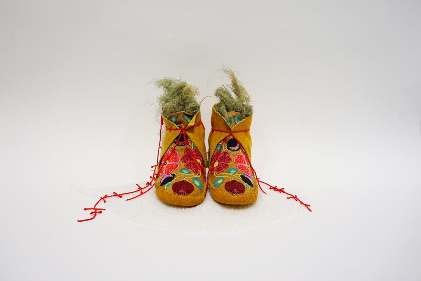 Sowing Seeds Natalie RollinsVictoria, British Columbia Size 17" x 10" x 10" Medium Hide, seed beads, lichen, sinew, nylon thread Sowing Seeds emerged from a quiet longing — a reclamation of cultural fractals held in memory, body, and bloodline. Through my father, we are Northern Cree; through my mother, Irish, Scottish, and English. These inheritances meet in my hands, in the making, in the remembering. This work lives in the in-between and symbiosis — presence and past, known and seeking. It is an offering to belonging: to self, home, and the lands I now walk as guest. Rooted in kinship with Lkwungen territory, Sowing Seeds is a return, a renewal, a reverent listening to what has always been there. Sowing Seeds Natalie RollinsVictoria, British Columbia About the artist About the artist Natalie RollinsVictoria, British Columbia Natalie Ashley is an interdisciplinary artist and member of the Driftpile Cree Nation (Treaty 8) through her father. Raised on the prairies and shaped by her family’s creative legacy—her Kokum’s beadwork, her uncle’s carvings, her mother’s textiles—her practice lives in the in-between: memory and body, longing and land. Of Northern Cree, Irish, Scottish, and English descent, Natalie’s work is a reclamation and return. Follow on social