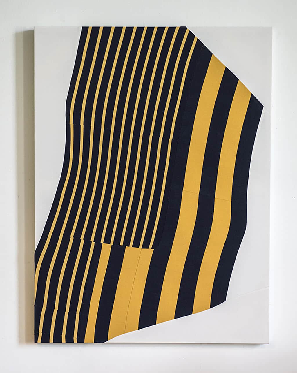 Tectonic 20 Lindy FyfeToronto, ON Size 48" x 36" Medium recycled knit fabric w/canvas, over wood stretcher This piece is constructed using recycled fabric from clothing found at thrift shops. There is play and tension in the fabric as the work shifts in the process of its creation. The title of this series, Tectonic, refers to the geological plates of the earth that slide and collide creating continents, mountain ranges and ocean beds. Tectonic 20 Lindy FyfeToronto, ON About the artist About the artist Lindy FyfeToronto, ON Lindy Fyfe, an artist born and raised in Montréal, is currently based in Toronto. She completed her visual arts education at Toronto School of Art in 2003. Once a professional calligrapher, she now maintains an active studio practice concentrating on painting, fabric construction, drawing and collage. In 2010 she was given a major solo show at The Robert McLaughlin Gallery, a survey presenting her full range of media. Recently her work was featured in two Ontario exhibitions—World of Threads, Oakville and Fibreworks 2014, Cambridge Galleries. “When I first began to experiment with textiles, my intention was to create a more complex surface to paint on. However, I found the intersection of seams and play of movement of patterns suggested alternatives that directed me toward other possibilities. My fabric works and paintings mutually explore movement and colour as formal elements of abstraction.” Follow on social