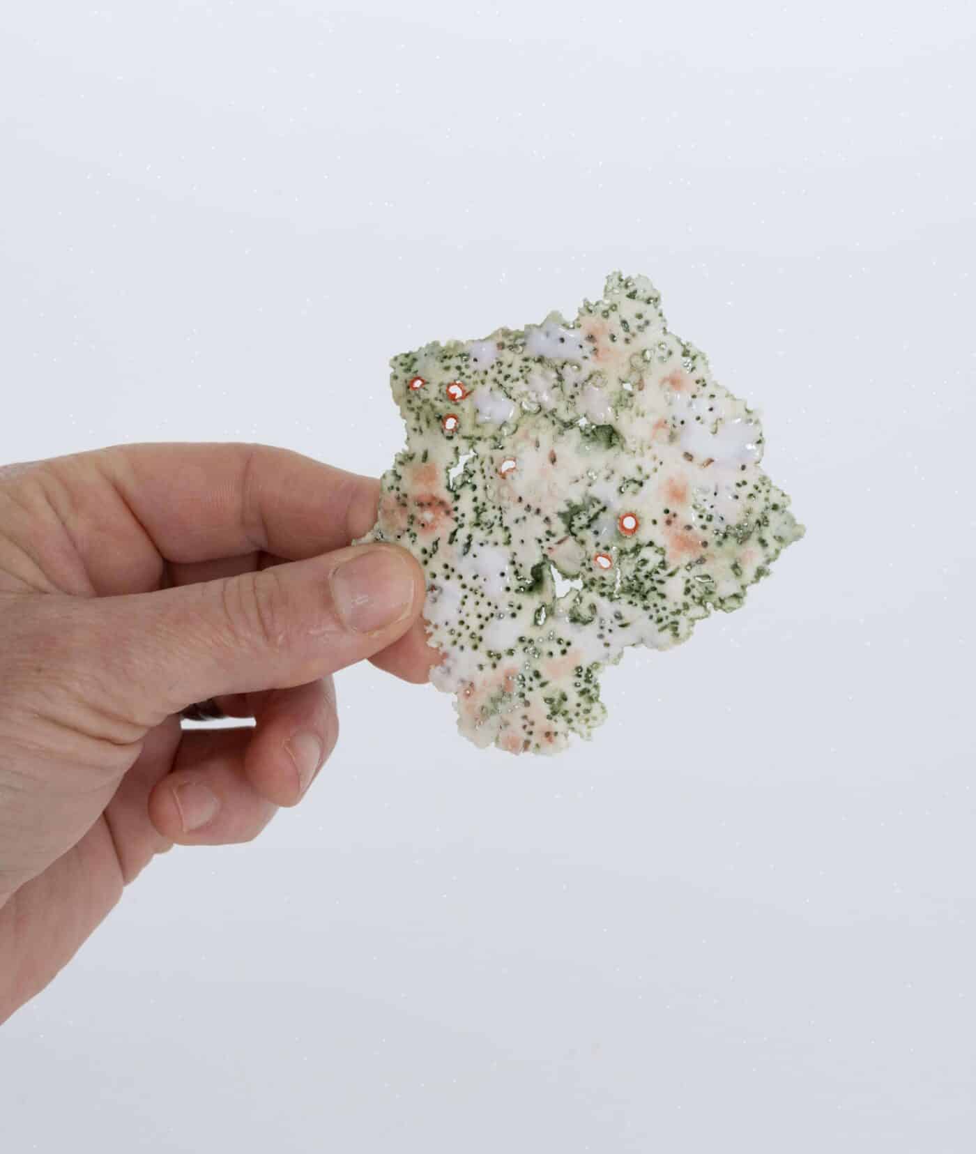 B’Arquive: A personal archive of material exploration Marney McDiarmidKingston, Ontario Dimension 12" x 24" Médium Ceramic porcelain fired to Cone 6 with underglazes B’Arquive is a catalogue of objects that occupy the tension between permanence and impermanence, the natural and the human-made. Made of reclaimed porcelain and ceramic pigment, the collection represents remnants of what was and future imaginaries of what could be. In my practice, I struggle with the contradiction of finding solace and refuge in the “natural” and the inherent grief of physically transforming earth from impermanence to permanence, a type of moral injury. My unstable resolution of this inner conflict is to fashion vestiges of my material process into a queer ecology that values intimacy, strangeness and connection. B’Arquive: A personal archive of material exploration Marney McDiarmidKingston, Ontario À propos de l'artiste À propos de l'artiste Marney McDiarmidKingston, Ontario Marney McDiarmid is a queer ceramicist and visual artist. She uses beauty as a tool for engagement, creating lush, sensuous pieces that call up notions of replenishment and frequently explore the climate crisis. Her illustrations add decorative elements and narrative content to her functional ceramic pieces and are central to her public art. Marney envisions the slow pace of her practice as running counter to systems of mass production. Her work embodies notions of care, consideration, and connection. She was featured in Ceramics Monthly and in September of 2025 will exhibit "The Clearing", an installation at Agnes Etherington Art Gallery. Suivez sur les sociaux