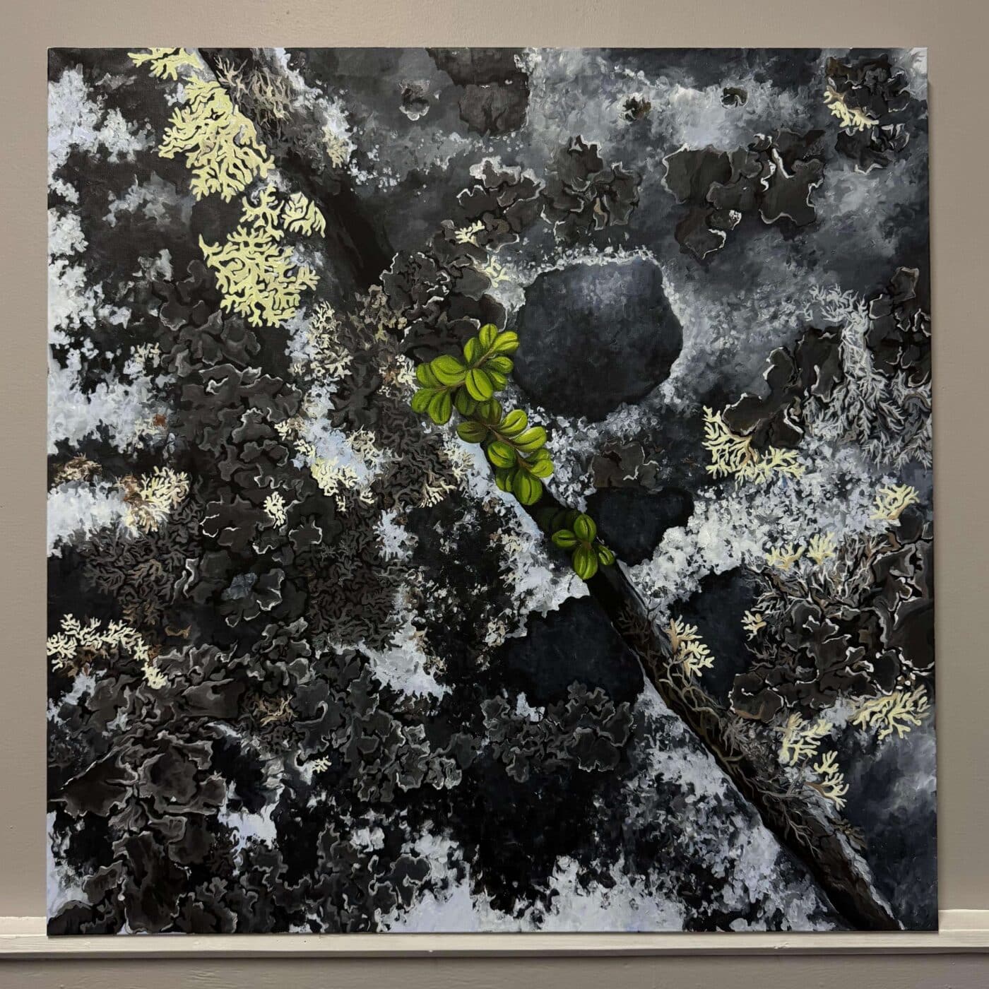 Lichen (Behind the Hill 2) Jessica WintersSt. John's, NewFoundland and Labrador Prix du public - vote en-ligne Dimension 36" x 36" Médium Acrylic on stretched canvas SSNAP People’s Choice Award Online Vote $1,000 This Lichen series began during an international residency that left me longing for my home – Nunatsiavut. Lichens have long captivated me with their quiet resilience, complex structures, and symbiotic nature. They speak to environmental health and reflect the intersection of my dual backgrounds as both a biologist and an artist. As I walk the hills near my home, their intricate forms ground me in presence and attentiveness. With this work, I aim to offer the viewer a similar experience—a moment of stillness and connection with the often-overlooked details of the natural world. Prix du public - vote en-ligne Lichen (Behind the Hill 2) Jessica WintersSt. John's, NewFoundland and Labrador À propos de l'artiste À propos de l'artiste Jessica WintersSt. John's, NewFoundland and Labrador Jessica Winters is a painter, mixed media artist, and curator from Makkovik, Nunatsiavut, currently based in St. John’s, Newfoundland. She holds a biology degree from Memorial University and committed to art full-time after a 2021 residency in Tilting, Fogo Island with Arts and Minds Canada. Her work, primarily painting, explores everyday Inuit experiences, using displacement and reinterpretation to evoke presence, nostalgia, and appreciation. Winters has exhibited nationally, including in Surfacing at Feheley Fine Arts (Toronto) and S’olh Xaxa Temexw, Our Sacred Earth at Robert Kardosh Gallery (Vancouver). In 2023, she won the Hnatyshyn Saunderson Prize and was longlisted for the 2024 Sobey Art Award. Suivez sur les sociaux