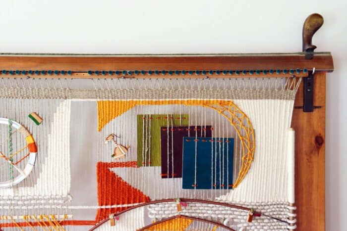 When a musical instrument is retired and disassembled, it takes with its demise countless possibilities of reshaping our experience, and therefore, our world. With this piece, I attempted to turn the loss of a local piano into a non-figurative homage to the multiplicity of colors, textures, and shapes it might have inspired during its lifetime. The loom itself became the frame, supported by steel action brackets and crowned by the hammer bar and brass pedals. Scraps from other projects were woven in dialogue with copper strings and felted hammers. With a jazzy style, the design was improvised during the weaving.