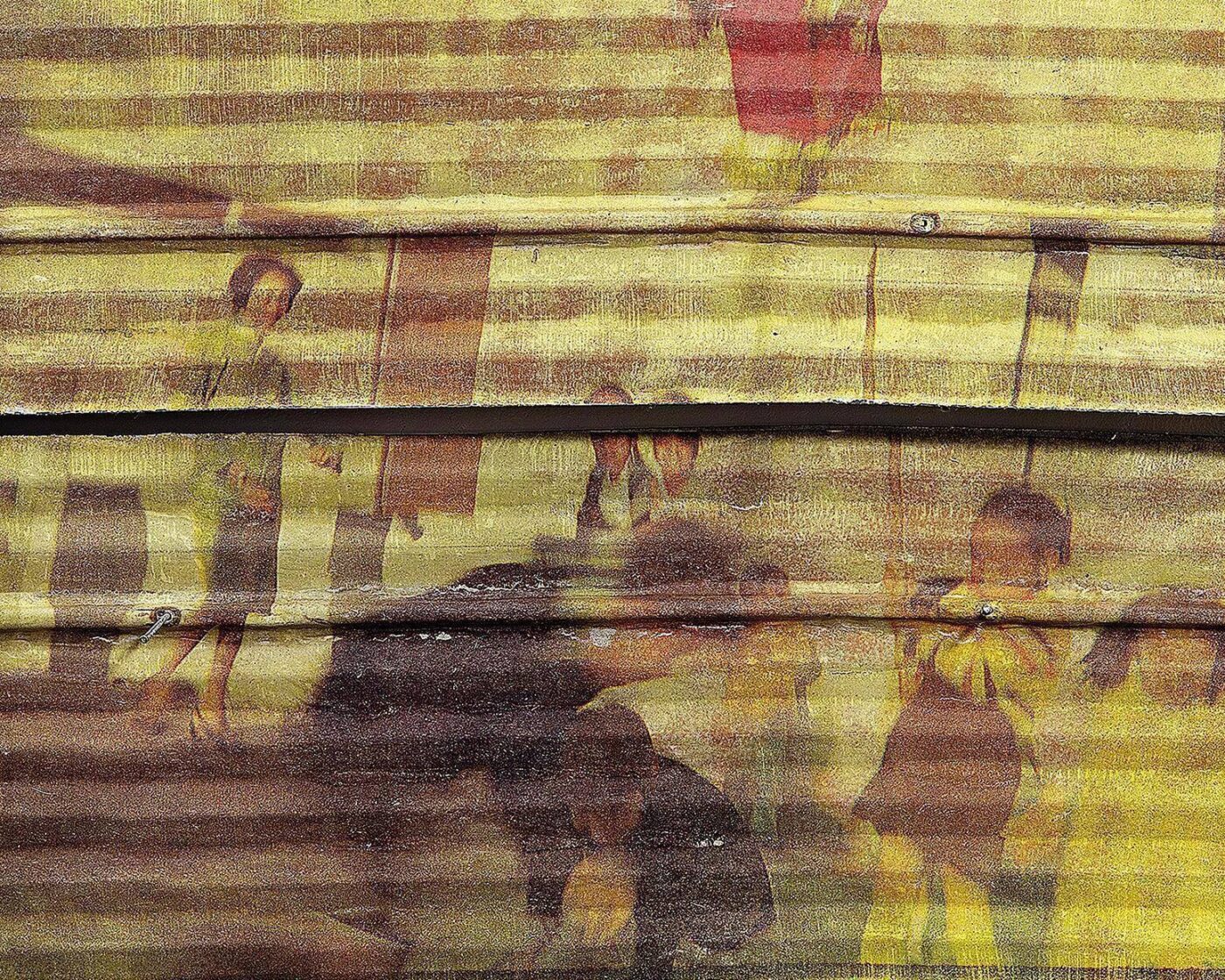 The piece is an archival family photograph transferred onto two rusted sheets of found corrugated zinc. The material’s texture evokes the erosion of time and the uncertainty of childhood memories shaped by migration. The blurred figures in the photograph invite reinterpretation, allowing me to reconstruct a narrative that may diverge from actual events. This piece questions the reliability of memory and how distance—both temporal and geographical—alters our recollections. It reflects the process of constructing a diasporic reality from fragmented memories where truth is fluid, shaped as much by absence and imagination as by fact.